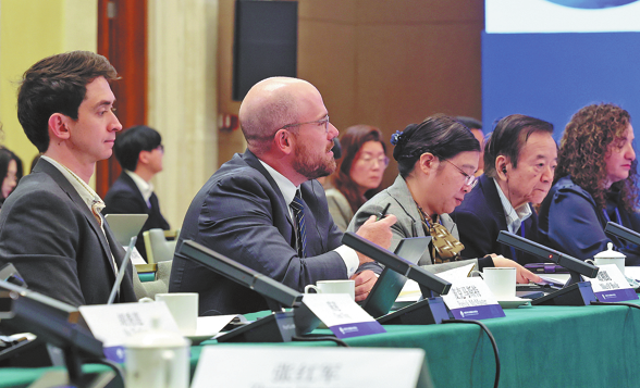 Attendees of a forum in Beijing on Thursday discuss ways to tackle climate change. WANG ZHUANGFEI/CHINA DAILY